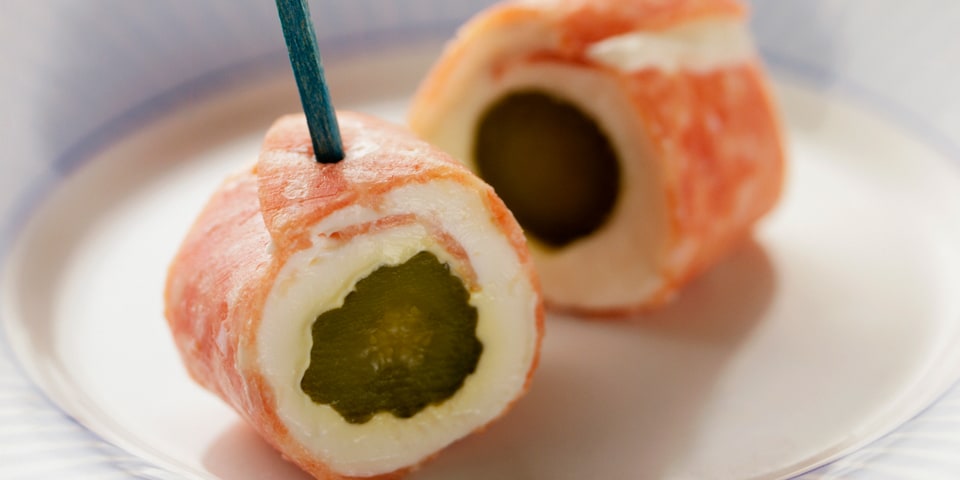 Eine leichte Vorspeise, ideal für die schöne Jahreszeit: die Sommerröllchen aus Salami und Essiggurken.