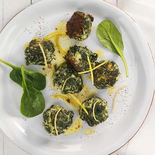 Spinat-Ricotta-Klößchen mit gekochtem Schinken