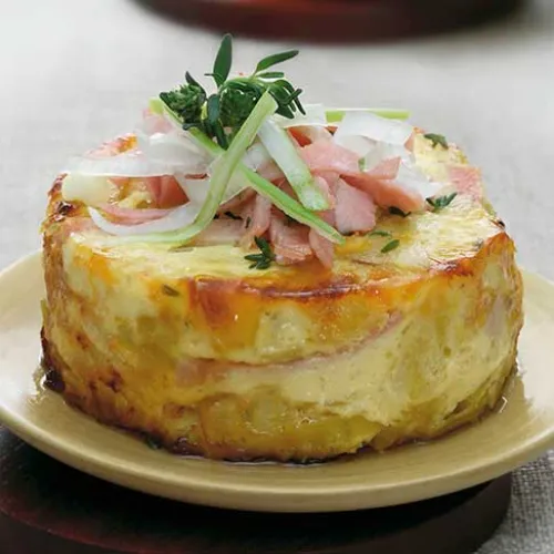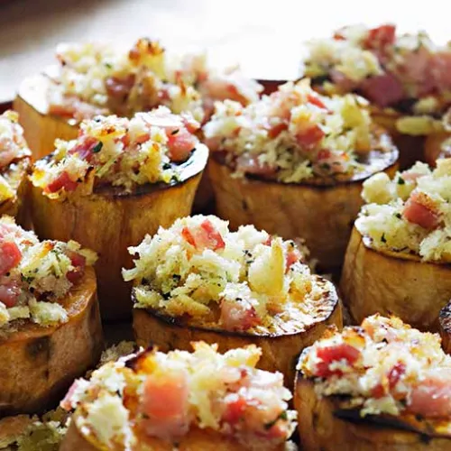 Mini-Quiche aus Kartoffeln, mit Robiola und Speck