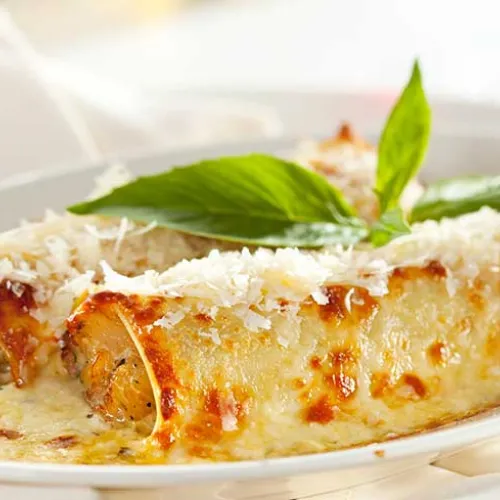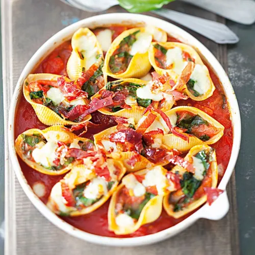 Conchiglioni nach Caprese-Art mit rohem Schinken