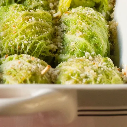 Mit rohem Schinken gefüllte Ravioli und Stängelkohlsauce
