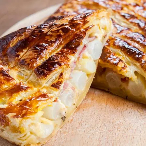 Salzige Crêpes mit gekochtem Schinken und Scamorza-Käse