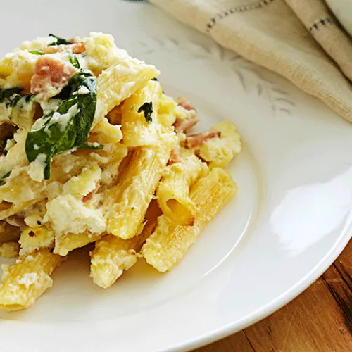 Pennette mit Ricotta, Speck und Mangold