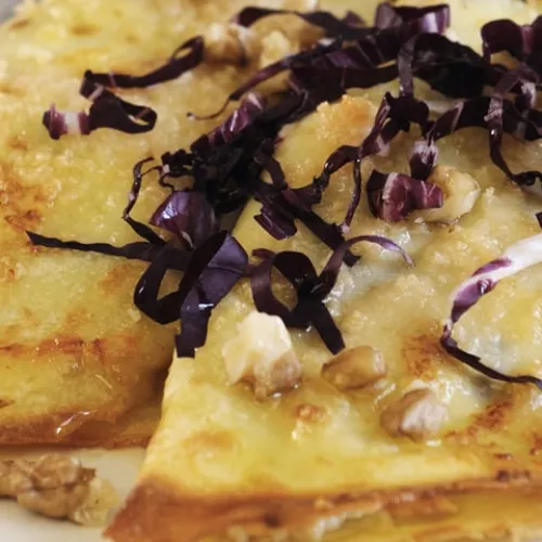 Salzige Crêpes mit gekochtem Schinken und Scamorza-Käse