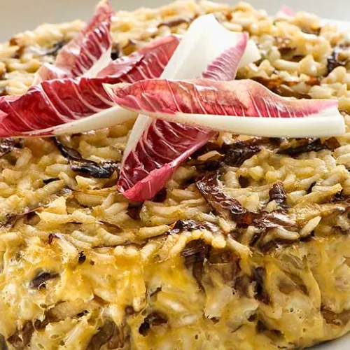 Reistörtchen mit Radicchio und Huhn