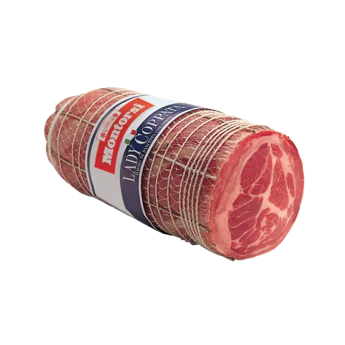 Traditional speciality of the Parma area, this product is obtained by processing pork loins (neck muscles), one of the best cuts of pork. Hand-tied to create the traditional cylindrical shape, it is stuffed into natural casing and then dry-cured. Finely cut slices are compact and sweet with a delicate scent of pepper and garlic.