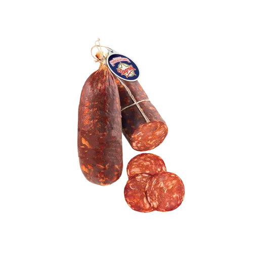 This traditional Hungarian recipe (introduced in Italy during the Austro-Hungarian domination) offers an extra-fine minced salami. Its delicate flavour is enhanced by a slight smokey hint.