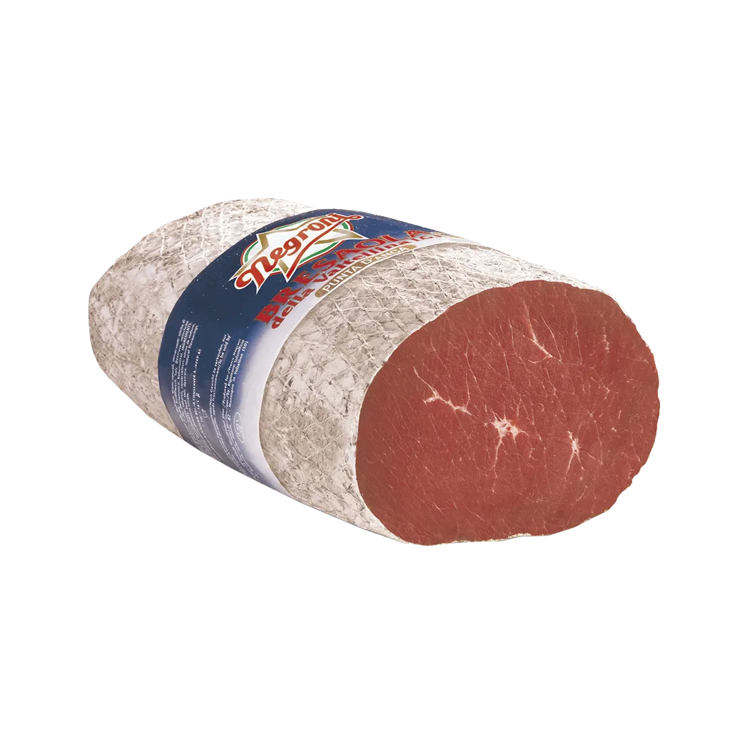 Boeuf affiné typique de la Valtelline (Alpes Italiennes Centrales), la bresaola certifiée I.G.P. est produite à partir de coupes sélectionnées des cuisses de boeuf, habilement élaborées avec un mélange de sel et d'épices. Les tranches de couleur rouge brillant, sont finement coupées et révèlent une fragrance délicate et légèrement aromatique.