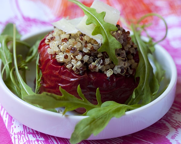 Lorsque le soleil rayonne, les prés sont secs et tendres et les journées s’allongent, chaque occasion est bonne pour organiser un pique-nique et une sortie en plein air. Mais voilà que se pose le problème: quoi mettre dans le panier en osier? La tradition veut que l’on choisisse parmi les recettes classiques telles que la salade de pâtes, la salade de riz ou des sandwiches, mais si vous recherchez quelques nouvelles inspirations et idées, nous sommes prêts à vous en donner une: poivrons farcis de quinoa, jambon et fromage. Un plat unique, substantiel et original, exquis même froid, qui vous conviendra certainement pour un pique-nique, à manger froid au bureau ou le soir devant la télé avec toute la famille.