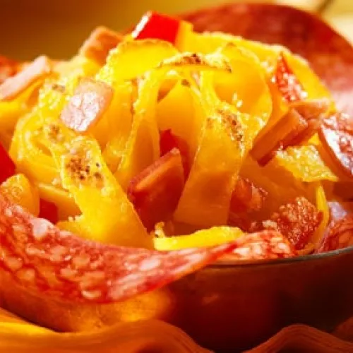 Tagliatelles en cocotte et en croûte de Saucisson Milano