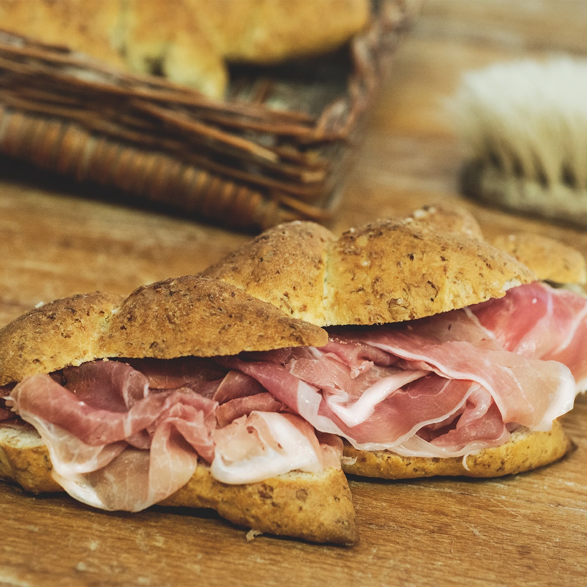 Nato in Italia dopo il 1868, il Pane Rubato preparato dal Panificio Grazioli, racconta ancora oggi la storia dei contadini e dei mugnai che sottraevano il grano alla tassazione del fisco. Morbido e simile ad una focaccia, il gusto rustico del Pane Rubato si abbina perfettamente a salumi classici e avvolgenti, come il Prosciutto Crudo di Parma DOP Negroni.
