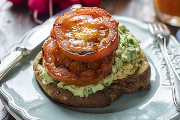Questa ricetta si presta benissimo ad essere declinata in due varianti: la prima è nella classica versione con l’aggiunta di uovo strapazzato, goloso e sfizioso; l’altra è quella vegana che vede l’hummus di ceci come sostituto delle uova. Per preparare l’avocado toast con il pomodoro grigliato, dovrai per prima cosa dedicarti alla realizzazione del pomodoro stesso. Taglialo a fette non troppo sottili, avendo cura di insaporirlo con un pizzico di sale e infine ponilo sulla griglia facendo cuocere ambo i lati. Dedicati poi alla composizione del tuo piccolo capolavoro. Prepara le uova strapazzate e lasciale raffreddare, frulla l’avocado e spalmalo sopra le uova e infine guarnisci con due fette di pomodoro grigliato.