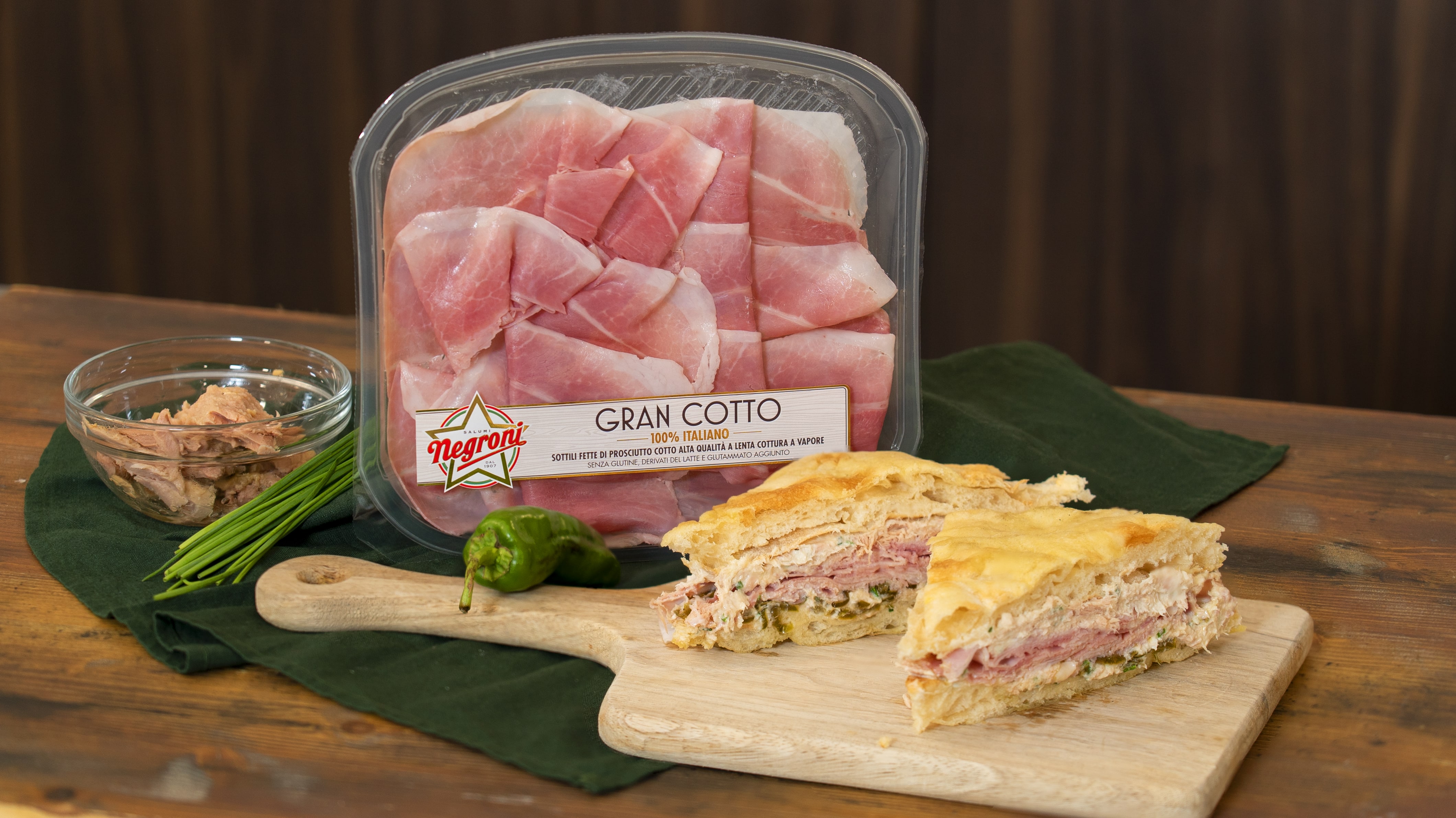 Una ricetta semplice e veloce: ingredienti perfettamente abbinati tra loro che danno vita a una focaccia da veri chef - non solo in camicia! I friggitelli, dal gusto deciso, incontrano tutta la delicatezza del Gran Cotto 100% italiano Negroni e della robiola.