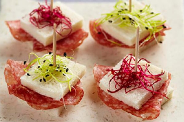 Chi lo ha detto che il club sandwich deve essere solo con il prosciutto crudo o con il cotto? Provate a prepararlo con il salame, tagliate il pane con un coppa pasta e lascerete i vostri ospiti senza parole. Spalmate tutte e tre le fette di pane con la salsa rosa oppure con una salsa tonnata facilissima da fare a casa quindi distribuiteci sopra dei germogli di porro, poi il salame, quindi qualche foglia di rucola ben lavata e condita con olio e succo di limone, chiudete con la seconda fetta di pane e ripetete gli ingredienti per il piano successivo. Fermate il club sandwich con uno stecchino e servite!