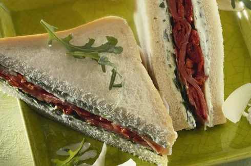 TRAMEZZINO CON PROSCIUTTO CRUDO, CARCIOFINI SOTT'OLIO, SALSA TONNATA E RUCOLA