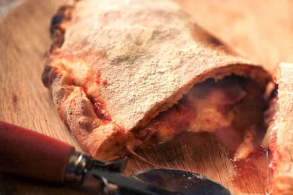 Calzone farcito con funghi, cotto e scamorza