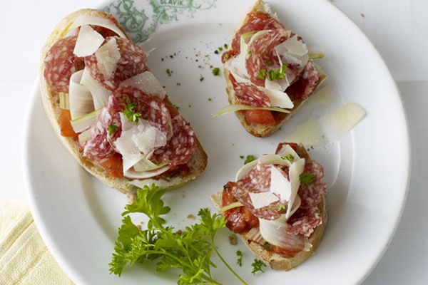 CROSTINI DI PANE CON SALAME E PARMIGIANO