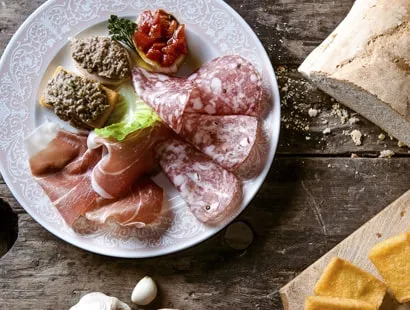 CROSTINI DI PANE CON SALSA VERDE E COPPA