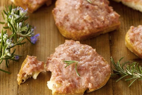 Crostino di pane con salsiccia e stracchino