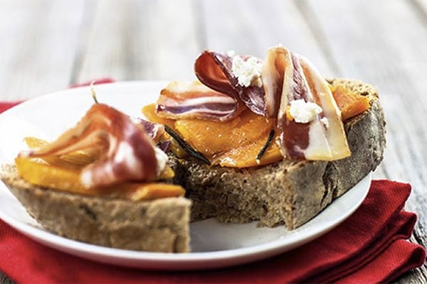 Crostino di pane con zucca e pancetta