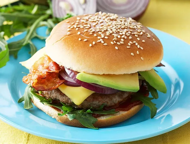 Hamburger americano con pancetta e avocado in 4 mosse