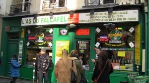 Il fallafel, versione yiddish della polpetta tanto diffusa in medio oriente, ha raggiunto Parigi al seguito degli ebrei ashkenazi. E qui il rito si perpetua, con gran soddisfazione di turisti e francesi che all’ora del pranzo si assiepano ordinati di fronte alla porta del locale più vivace del Marais
