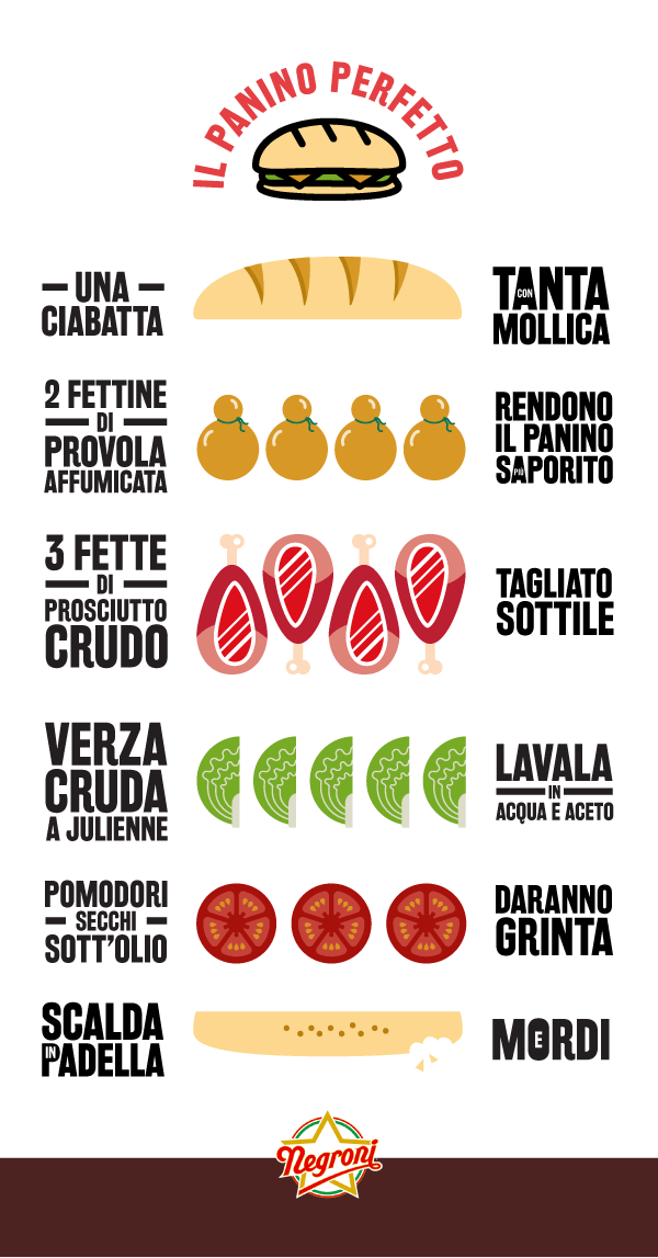 Per creare un panino irresistibile ci sono alcuni aspetti imprescindibili cui stare attenti. Il pane con tanta mollica è l'ideale se si usano salse o formaggi, sarà ancora più goloso se gustato caldo! Tra gli ingredienti da abbinare al prosciutto crudo, quindi, un formaggio saporito che si sciolga in modo omogeneo: la caciotta affumicata. La croccantezza del panino sarà data dalla verza tagliata a julienne e infine per dare un po' di grinta al panino dei pomodori secchi sott'olio!