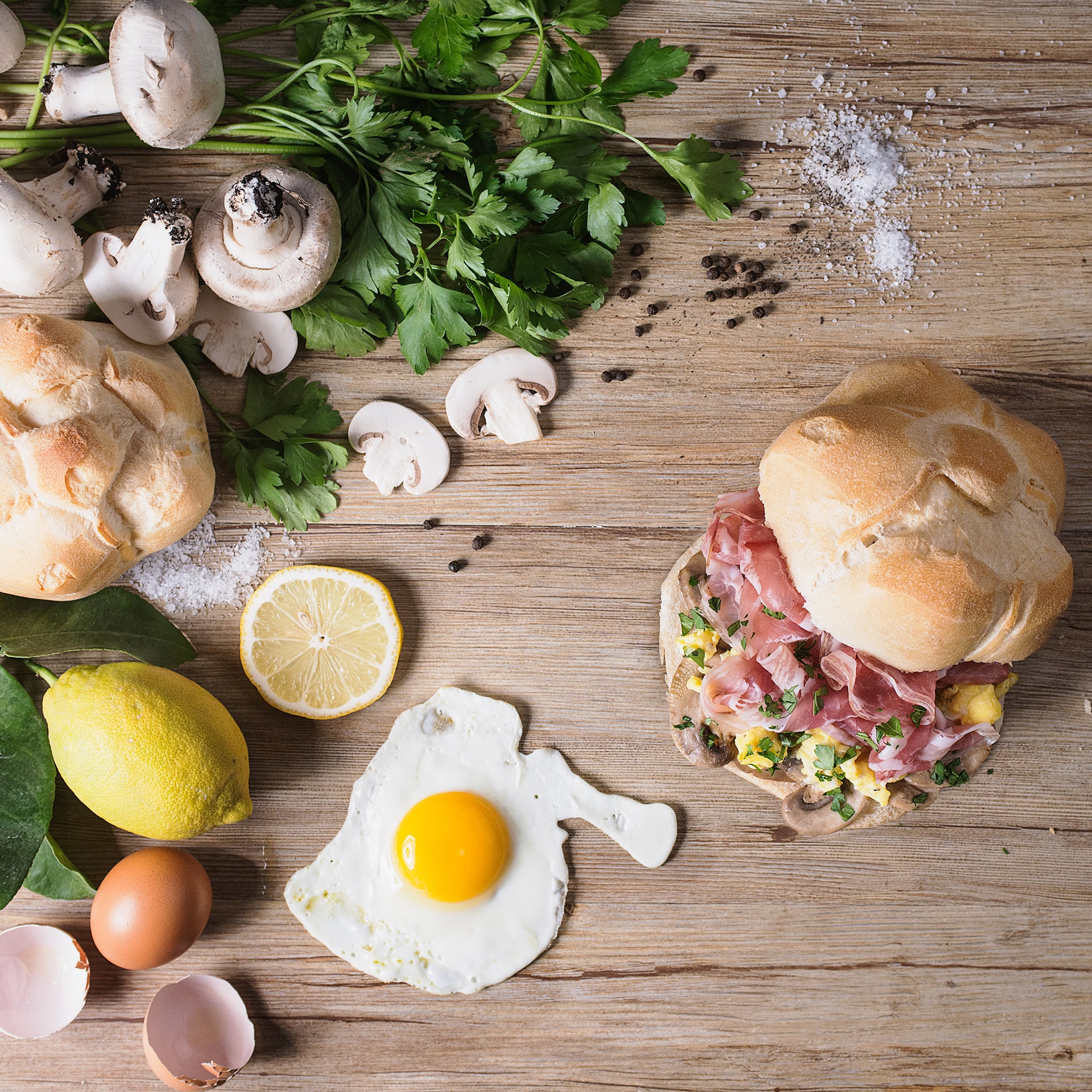 Questo panino è un richiamo alla colazione salata internazionale, con una rivisitazione tutta italiana. Pancetta coppata e uova si sposano alla perfezione, i funghi donano profumo e consistenza. Grazie al prezzemolo, questo panino acquisisce freschezza e il tocco finale capace di dare un tocco "esotico"? Ovviamente il succo di limone che lega tutti gli ingredienti in maniera impeccabile.
