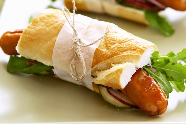 Questo panino è un classico della cucina laziale e campana che merita di essere provato almeno una volta nella vita anche se richiede l'uso dei fornelli. Mettete a bollire i broccoli per una decina di minuti. Quindi scolateli e fateli saltare in padella con un filo di olio e un'acciuga. Volendo potete anche aggiungere del peperoncino. Quando si saranno ben insaporiti aggiungete la salsiccia in cubetti e fate saltare ancora in padella. Basteranno pochi minuti per ottenere una cottura omogenea della salsiccia. Broccoli e salsiccia saranno gli ingredienti di un panino semplice e davvero buonissimo. Potete usare delle fette di pagnotta oppure una focaccia bianca tagliata a libretto. Avvolgete il panino nella carta stagnola che tenga bene tutto stretto quindi lasciate raffreddare a temperatura ambiente e poi conservate in frigorifero.