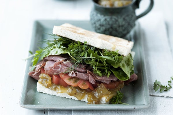 Tra le ricette da gustare durante la festa di Ferragosto ce ne sono alcune dal mondo che meritano di essere provate. Il sandwich con il pastrami è un classico americano, specialmente di New York. Il pastrami è una carne di manzo lasciata a macerare a lungo nelle spezie, ma che si presenta quasi come un roastbeef. Una volta affettato è fantastico per farcire i panini. Potete provare a prepararlo a casa, seguendo la nostra ricetta, e usarlo per un panino ricco con rucola, pomodori, peperoni e quello che vi suggerisce la vostra fantasia.