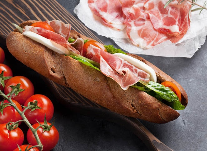Un incontro di sapori freschi e vivaci allo stesso tempo, a completare questa ricetta ci pensano anche i pomodorini e alcune foglie di basilico. Con questo panino farete un figurone con i vostri ospiti: potrebbe essere la ricetta perfetta per una cena tra amici, per una serata film o perché no, anche per un bell’aperitivo in terrazza o in giardino.