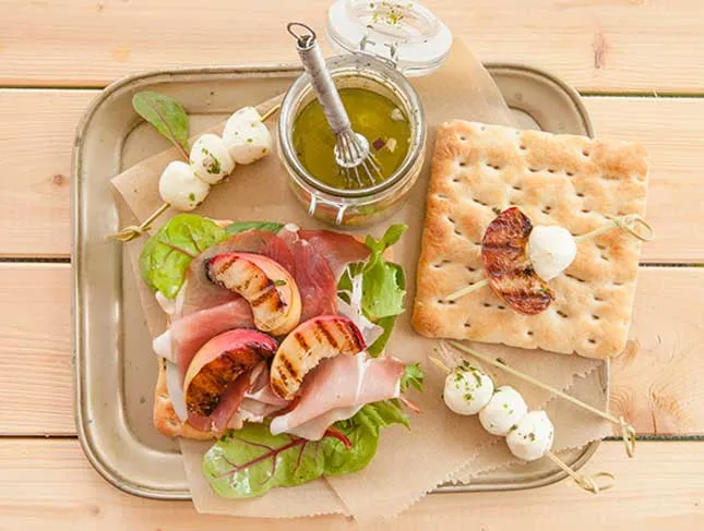 Panino con prosciutto crudo e pesche grigliate