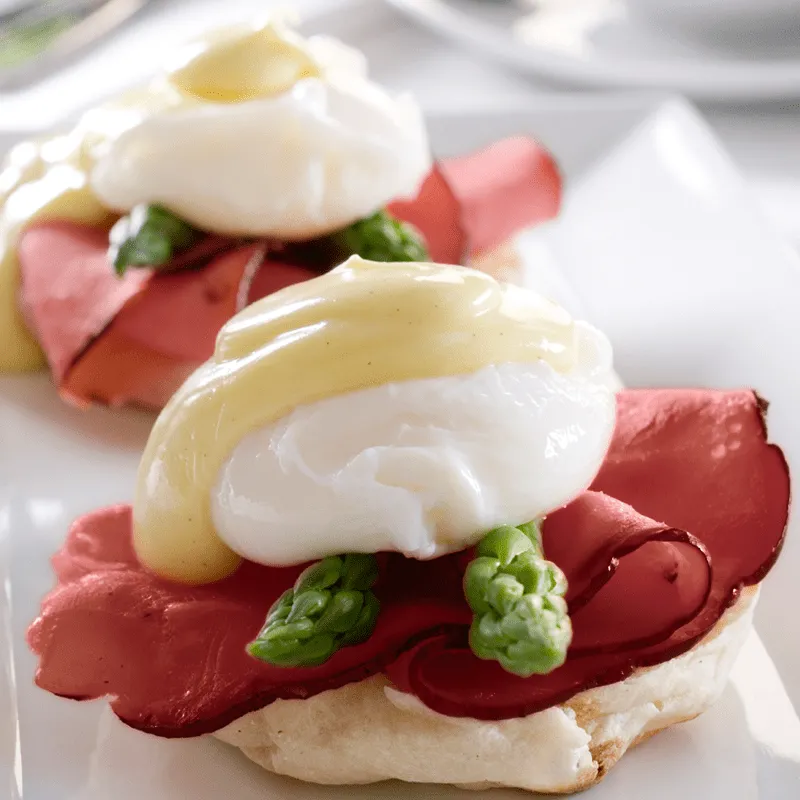 Panino di primavera con uova alla Benedict, asparagi e bresaola Negroni