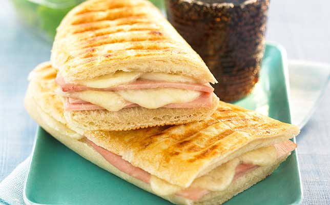 La merenda con un panino farcito stuzzica l'appetito di grandi e piccini, soprattutto se il panino in questione è grigliato in modo da rendere il pane croccante, ma non troppo, da far sciogliere il formaggio ed esaltare il sapore del prosciutto cotto.
