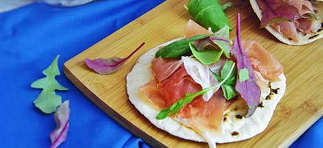 Non resta che creare le vostre piadine: spalmate uno strato di hummus di zucca, adagiate sopra di esso le fette di Gran Crudo 100% italiano Negroni e completate con della misticanza condita per dare freschezza e un colore speciale.