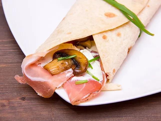 Il procedimento ottimale per condire una piadina alla perfezione è il seguente: fate cuocere il primo lato della piadina, non appena la girerete distribuite la robiola in pezzetti e i funghi sul lato già cotto. Terminata questa operazione la piadina sarà pronta per essere tolta dal fuoco. Una volta messa nel piatto aggiungete il prosciutto crudo, qualche funghetto e chiudete la piadina che sarà pronta per essere mangiata.