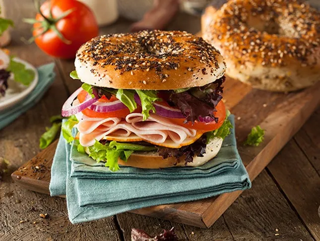 Pranzo in ufficio, il bagel con il petto di tacchino