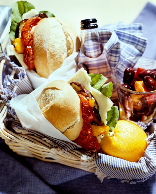 Scegliete il vostro panino preferito, che sia una rosetta, una ciabattina oppure una baguette. Taglaitela a metà e spalmate del formaggio fresco, quindi sistemate una o due fette di verdura e sopra disponete una fetta di prosciutto. Chiudete il panino e sigillatelo nella pellicola da cucina. Conservatelo in frigorifero fino al momento di partire per il vostro picnic.