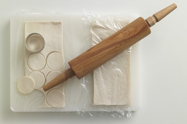 Prima di tutto, sistemate ogni fetta di pane per tramezzini su dei pezzi di pellicola da cucina. Con un bicchiere o un mattarello passate sul pane per schiacciarlo, non servirà molta forza vista la morbidezza del pane. A questo punto potete stendere uno strato di salsa tartara fatta in casa facendo attenzione a spalmarla molto bene anche sui bordi del pane che sono i primi a seccarsi.