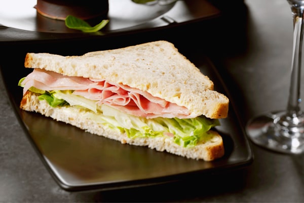 - Disponete una fetta di pane per tramezzini su un piano di lavoro e sopra di essa spalmate uno strato di maionese/senape/salsa.