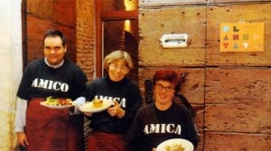 La gastronomia, la ristorazione, viene in “aiuto” a queste persone. Mette loro a disposizione una prospettiva, una possibilità che in molti altri casi è difficile avere. La Comunità di Sant’Egidio ha puntato su questo, ha pensato che insegnare (bene, con metodo e con le persone adatte) come servire ad un tavolo, come aiutare uno chef in cucina, come accogliere gli ospiti, sia qualcosa che le persone disabili possono fare come (se non meglio) degli altri. L’importante è metterli nelle condizioni di imparare, questo è il primo passo affinché il loro sogno si realizzi. Poi ci vuole un lavoro, un ristoratore che li assuma e che superi le eventuali “diffidenze” nell’accogliere nelle sue sale un/a ragazzo/a disabile. E questo è un altro aspetto non da poco. Perché i disabili possono lavorare in modo molto professionale, con motivazione e produttività, ricevendo allo stesso tempo dignità dal loro lavoro.