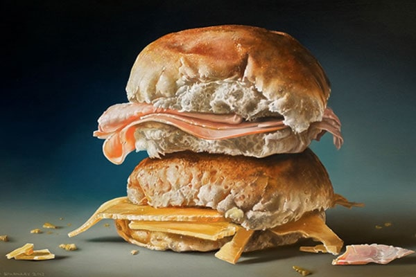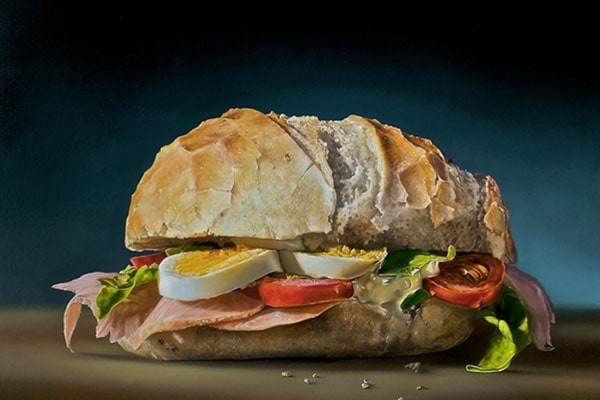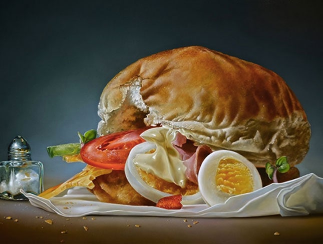 I quadri iperrealistici di Tjalf Sparnaay sembrano delle foto e mettono appetito. L'artista è specializzato nel food: i suoi panini farciti e gli hamburger, ma anche i pasticcini e le coppe di gelato sono succulenti, colorati e soprattutto sembrano veri.