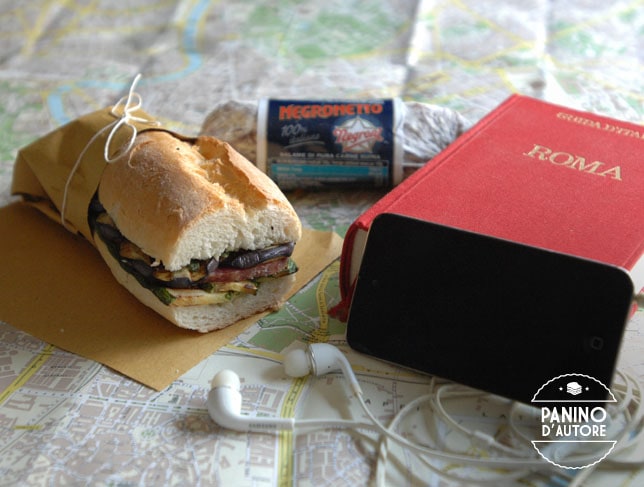 Data la presenza della salsa verde, inoltre, suggerisco di non aggiungere olio alle verdure, dato che è più che sufficiente quello che avete usato per ungere la bistecchiera. Per ultimo ricavate le fette dal salame, tagliandole ad uno spessore di circa tre millimetri, e procedete con la composizione finale. Distribuite un cucchiaio raso di salsa verde sulla metà inferiore del panino, quindi disponete le fette di melanzana, poi quelle di salame e, per finire, quelle di zucchina, in modo che le verdure racchiudano il salame e che la salsa verde sia a contatto solamente con esse. Distribuite ancora un poco di salsa verde sulla mollica della metà superiore del panino, quindi chiudete, esercitando una leggera pressione e addentate voracemente. Buon appetito.”