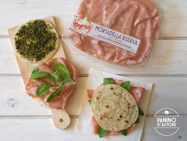 Piadina con mortadella e paté di olive de La Schiscetta Creativa