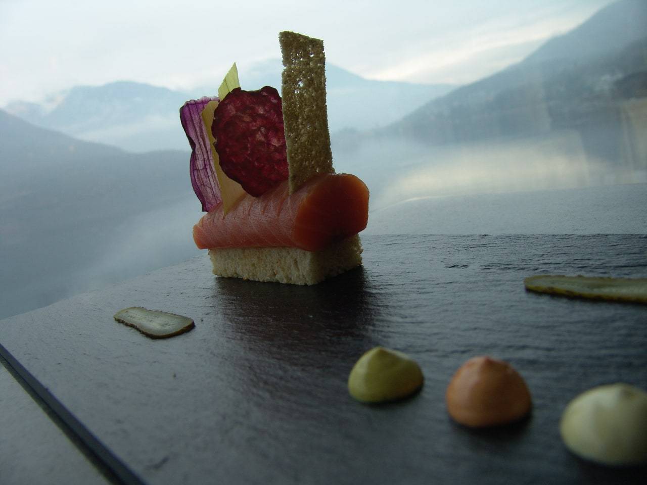 Le contaminazioni culturali fanno fare il giro del mondo. Con un panino Marco Sacco, chef giocherellone e patròn del Piccolo Lago di Verbania, ci porta dall’Italia agli States e ritorno, imboccando a breve la via per l’Oriente. Tra i piatti diventati un simbolo per Sacco c’è l’hamburger di trota del Mergozzo. Antipasto che nasce in Napa Valley otto anni fa, arrivato fino a noi nell’ultima versione che vi presentiamo di seguito.