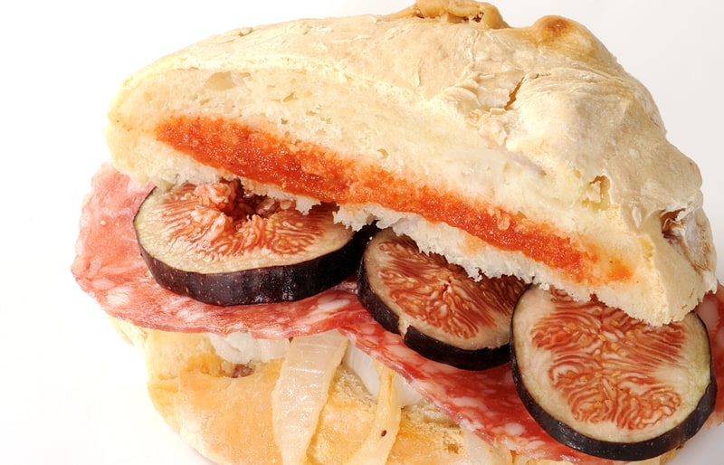 Fatto sta che questo panino ci pare perfetto per la stagione che sta per cominciare. Ieri leggevamo che ci aspetta un week-end con temperature africane, dunque l’estate sembra ormai arrivata. Lo chef Tonino Napoli del Pantagruel Vecchia Rende per noi vuol dire sole e mare. Quando, tre anni fa, gli chiedemmo se voleva realizzare un panino d’autore utilizzando il salame Cremona IGP, ci rispose entusiasta. L’idea gli piaceva molto. Forse già aveva in mente, dopo due minuti da questa adesione al progetto, un abbinamento tanto semplice quanto ricercato e creativo, degno di uno chef che ama, vive e sente la sua terra: il salame con i fichi. La terra è quella di Calabria, i fichi non possono che essere quelli di Tropea. Un tripudio di colore (rosso intenso) e di gusto. Un rosso che deriva dal sole che illumina le (nostre) terre del Sud. E che gli dona quei sapori unici. Non solo i fichi ma anche la cipolla (sempre di Tropea), altro prodotto dal gusto inimitabile!
