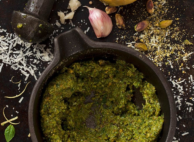 Chi lo ha detto che il guacamole sia solo messicano? Anche in Italia c’è una salsa perfetta per tante ricette che però non contempla però la dolcezza dell’avocado. Al suo posto infatti, come protagonista della ricetta, c’è il pistacchio. Un vero e proprio pesto dunque, da preparare con un mortaio - o se preferite velocizzare il procedimento senza perdere il gusto, potete utilizzare un mixer - e capace di essere squisitamente impeccabile.