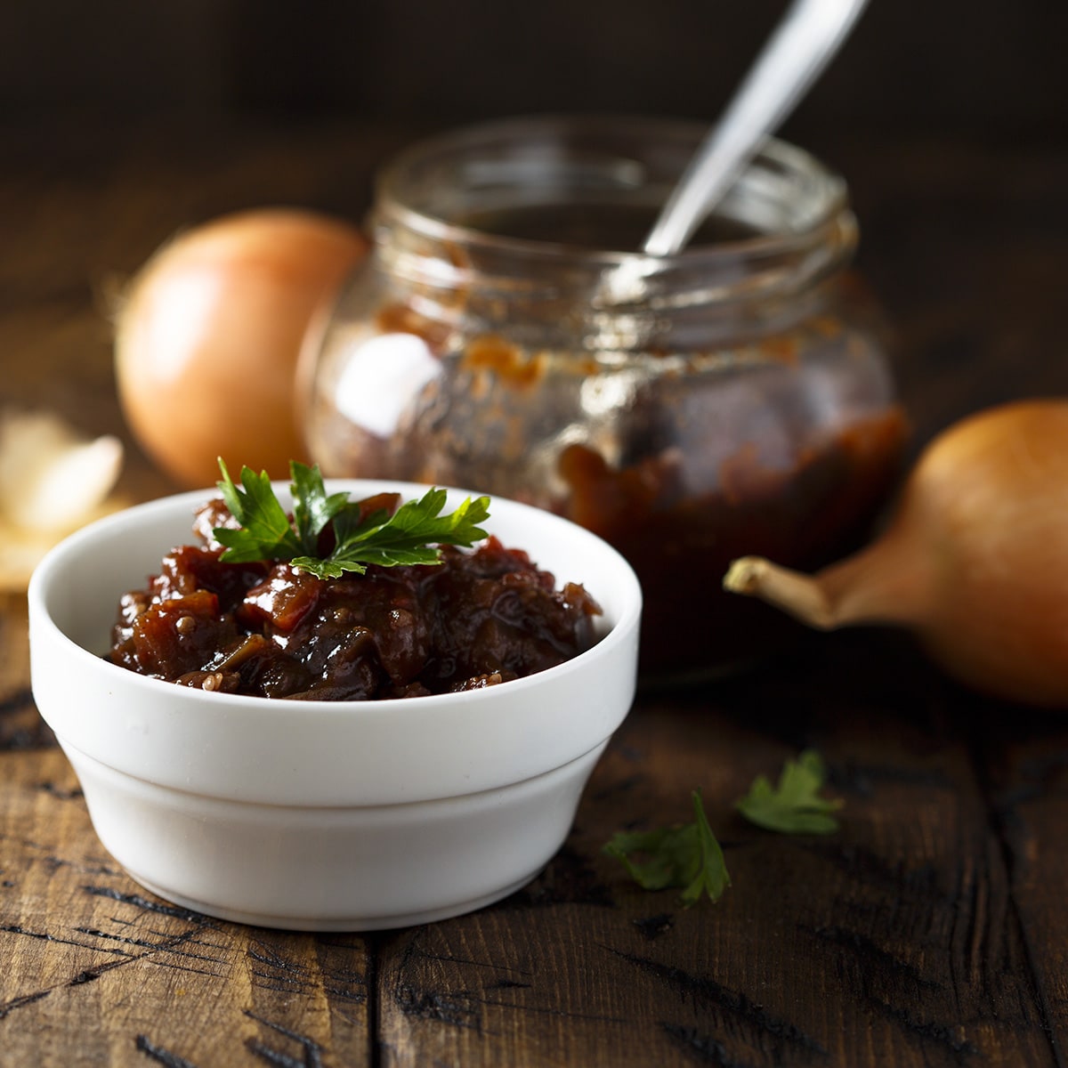 Salsa di cipolle e petali di bacon