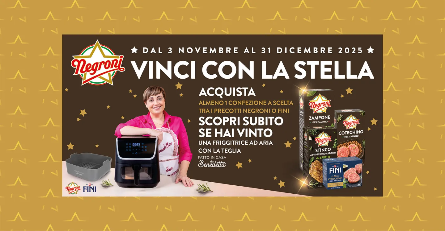 Acquista almeno un prodotto a scelta tra i precotti Negroni e Fini e prova a vincere ogni giorno una friggitrice ad aria con la teglia in silicone della linea "Fatto in casa da Benedetta" .