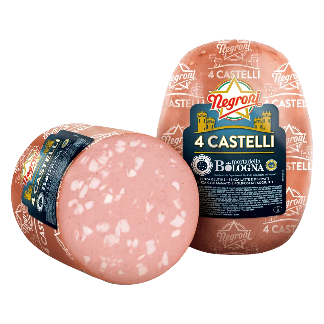 Die nach dem Originalrezept aus Bologna hergestellte Mortadella ist seit 1998 mit dem Qualitätswarenzeichen versehen. Sie wird aus ausgewähltem Schweinefleisch erster Wahl hergestellt, das mit Speckstreifen und Gewürzen vermischt wird, ganz nach den besten herkömmlichen Rezepten der Tradition der Emilia Romagna. Am Heikelsten ist die Phase der Gärung, bei der die Mortadella ihre typisch samtige Textur, den Duft und die Weichheit erlangt.